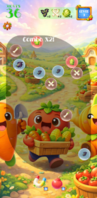 Niravel: Bubble Party is a free puzzle game available on Android that invites players to unwind in a charming farm setting. The objective is simple: tap on two or more matching items to collect various fruits, vegetables, and special objects. Each level challenges players with a limited number of moves, encouraging strategic thinking and thoughtful gameplay. The game's design features vibrant graphics and smooth animations that enhance the overall experience.